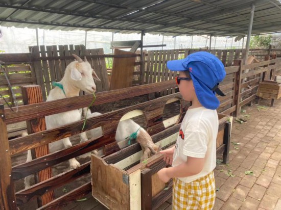 小朋友在市郊農場喂養小動物,樂不思蜀(樊女士 攝)