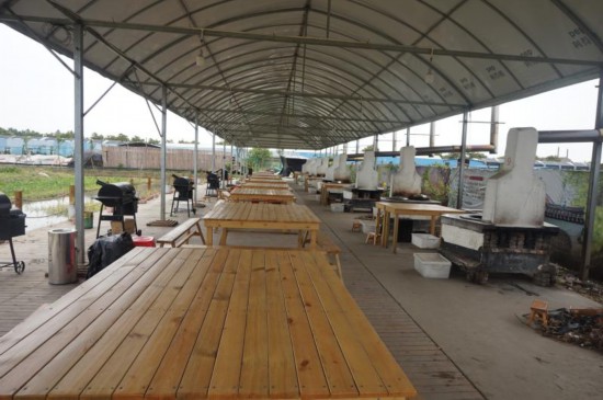所有游客摸到的、釣到的、抓到的、採摘的農產品,全部可以現場烹飪,因為農庄裡有幾十個農家土灶,配備了桌椅。