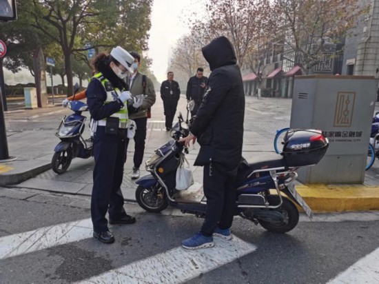 因騎行非機動車違反禁令標志指示,當事人被民警處以罰款50元。目睹這一執法過程的市民陳思佳暗暗叫好:“現在的電動自行車太猖狂,應該好好管管。之前,我走在人行橫道上,被一輛外賣車撞到手,對方睬都不睬,揚長而去。”