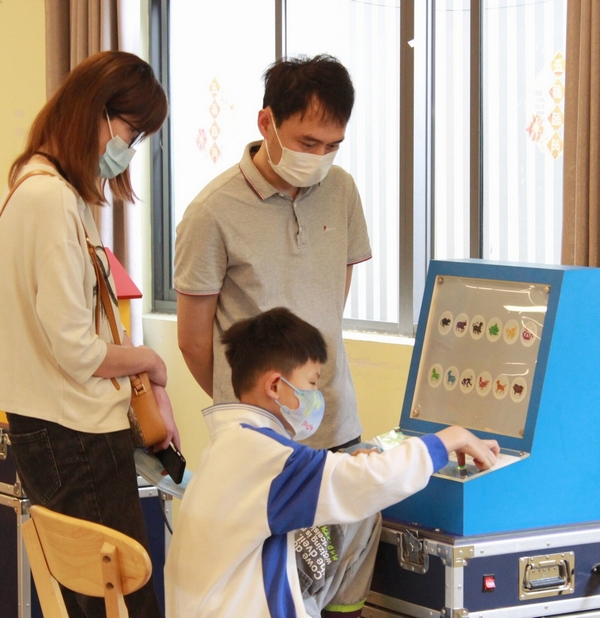 上午,真如黨群服務中心內人頭攢動。孩子們一走進場館,眼光就被眼前十幾台神秘的藍色儀器吸引住了,迫不及待上前擺弄起來。