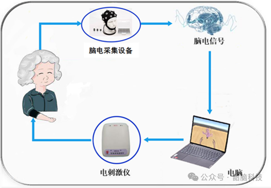 從中樞向外周,患者主動參與康復訓練,運用大腦來完成運動想象任務,刺激相應皮層,促進中樞神經系統重構,並向肢體發送運動信號。