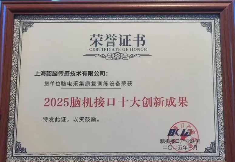 在近日舉行的2025中關村論壇年會腦機接口創新發展與應用論壇上,上海韶腦傳感技術有限公司研發的“腦電採集康復訓練設備”從眾多創新成果中脫穎而出,榮膺2025腦機接口十大創新成果。此次獲獎不僅彰顯了產業聯盟對企業在技術創新上的高度認可,更標志著我國腦機接口產業化進程邁入全新階段。