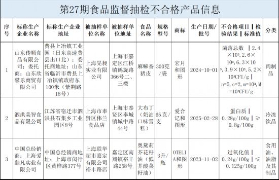 豬皮、芥花籽油,上海抽檢這3批次食品不合格