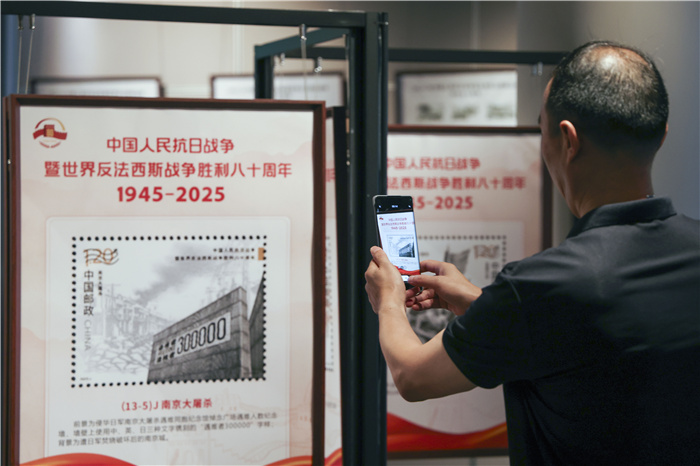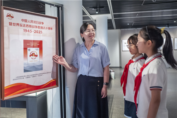 為配合此次郵票首發活動,《銘記歷史·珍愛和平——紀念中國人民抗日戰爭暨世界反法西斯戰爭勝利80周年》主題郵展也於同日在上海四行倉庫抗戰紀念館三樓臨展廳開幕。