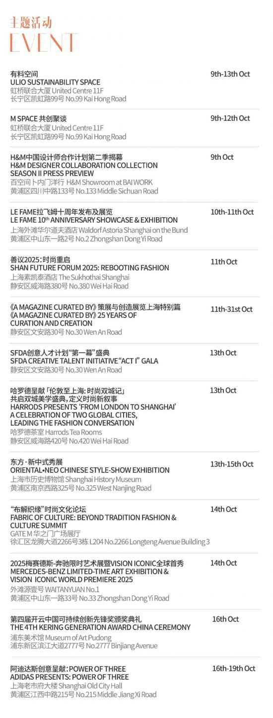 時裝周期間,2025 YOUTOPIA 呦桃時裝單元總決賽將舉辦頒獎典禮,同期上海服裝設計協會還將舉辦SFDA創意人才計劃「第一幕」盛典。