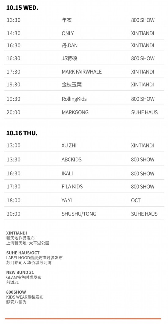 主秀場之外,本季時裝周繼續穩固構建多元發布矩陣,LABELHOOD先鋒時裝藝術節將於蘇河皓司、華僑城蘇河灣迎來第20季發布活動,持續為中國獨立設計師提供展示與發聲的重要平台﹔GLAM特色時尚發布在前灘31打造社交禮服特色時尚秀場﹔KIDSWEAR則在800秀上演兒童時尚專場。
