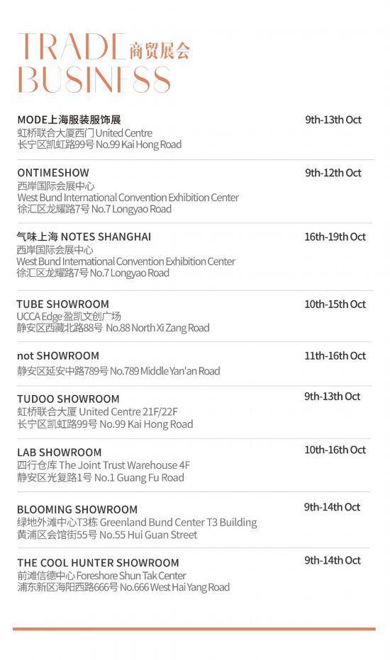 除MODE展外,ONTIMESHOW、TUBE SHOWROOM、notSHOWROOM、TUDOO SHOWROOM和LAB SHOWROOM等訂貨會再度集結亮相。上一季新加入的氣味上海Notes Shanghai本季將登陸上海西岸國際會展中心,匯聚來自世界各地的優質香水與香氛品牌。BLOOMINGSHOWROOM與THE COOL HUNTER SHOWROOM也將以更大規模和更優陣容持續為時裝周訂貨季注入專業力量。