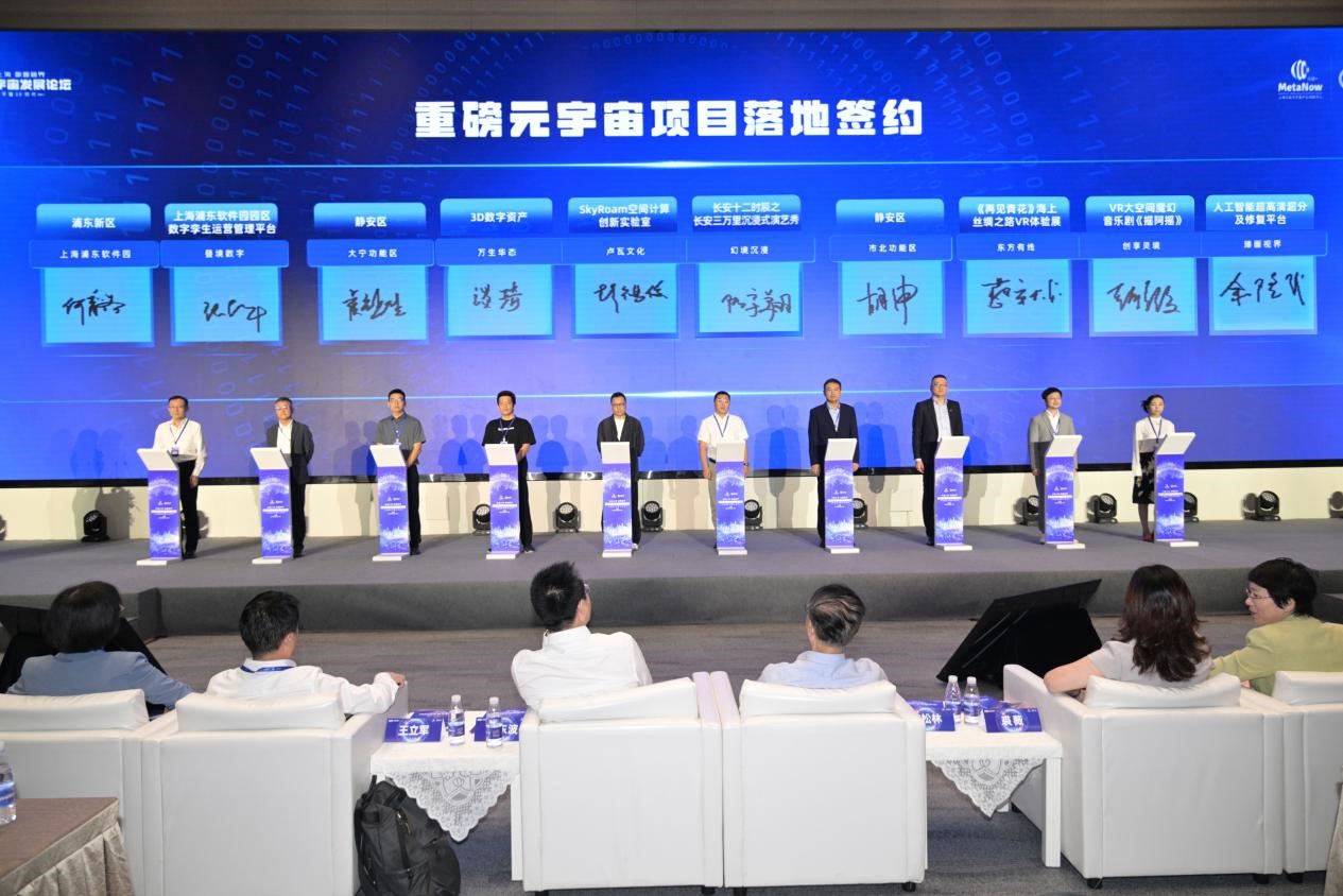 在元宇宙重點平台發布環節,多個企業代表發布的XR軟硬件適配平台、空間智能創作及雲渲染平台、大空間數字內容創制平台,已成為集聚資源、賦能企業、孵化創新的重要基石。在生態構建方面,浦東、徐匯、黃浦、靜安、普陀等區與多家元宇宙領軍企業,就敦煌路上看敦煌、大象元園區落地、上海浦東軟件園園區數字孿生運營管理平台等13個項目在現場完成簽約,標志著市區兩級聯動、政企協同的元宇宙產業生態正在加速形成。