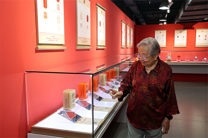 上海巡展特設的“光耀申城”展區尤為豐富,“崧澤古文化遺址”“朱家角古鎮”“豫園”等印章連接上海文脈,“海關大樓”“石庫門”“上海總工會”等印記銘刻紅色記憶,“上海外灘”“陸家嘴”“上海中心”“進博會”等作品則展現新時代上海的非凡成就。