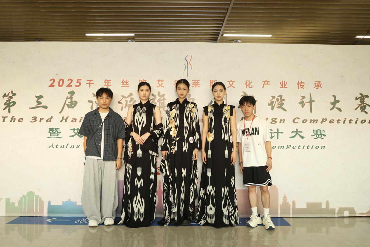 大賽最終評選出一等獎 1 名,獲獎設計師是賴嘉琪、張雷,作品名為《夢回絲路》﹔二等獎 2 名,分別是張子婧的設計作品《帕米爾疏影》、朱金標的設計作品《形色天成·東方雅韻》,三等獎 10 名,分別是侯辰蕊的設計作品《織夢青語》、莫艷玲的設計作品《芳華舊夢》、楊玉娟的設計作品《有“融”則靈》、羅昕、劉關林、曾偉華的設計作品《傳家》、王志麗的設計作品《西域風情》、繆思琪的設計作品《醒韻海瀾(藍)》、陳霄月的設計作品《ouroboros》、阿卜力米提·圖爾蓀托合提的設計作品《海派絲綢旗袍》、廖祿、馬一諾的設計作品《融·創—藍韻》、彭文黍、陳文婷、姚丁琦的設計作品《Rainbow Black(紅)》,獲獎作品在設計創意、文化表達、工藝技術與實用性等維度均展現出較高水准,充分體現本屆賽事 “創新傳承、融合發展” 的核心宗旨。
