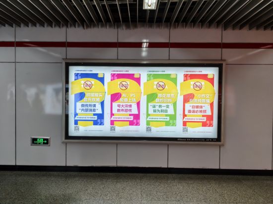 同步啟動的五大城市地標公益燈箱展,則以“集群化、規模化”的展示形式形成宣傳聲勢。在人民廣場、新天地等流量密集區域,系列“大字報”風格海報整齊排列,通過簡潔有力的文字、強烈對比的色彩,將網絡謠言的危害與辟謠知識傳遞給過往市民,讓公益宣傳融入城市生活場景,擴大宣傳面與影響力。