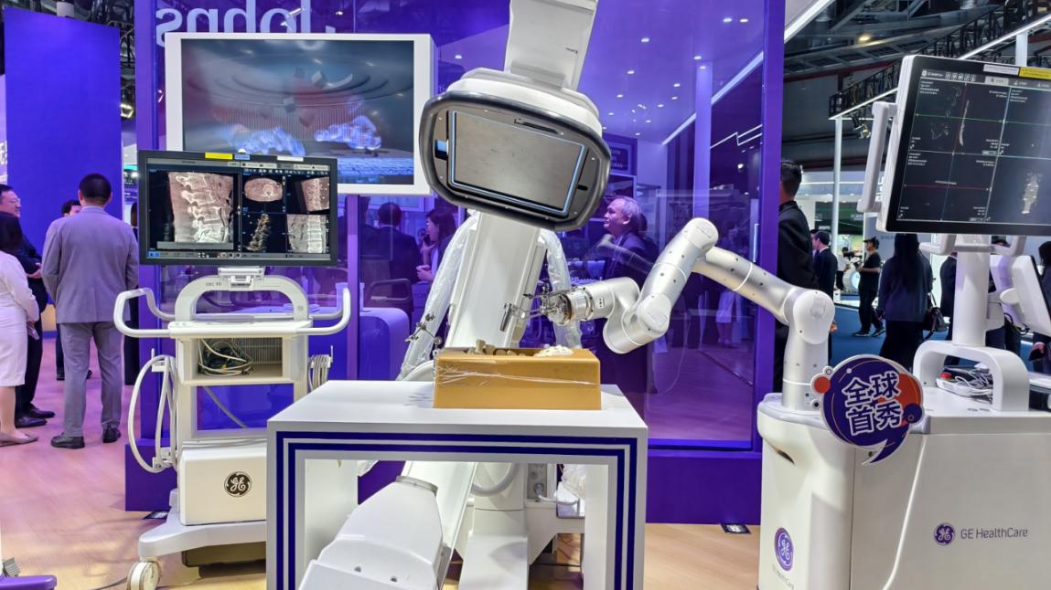 第八屆進博會上首發首秀的手術機器人。崔寅攝