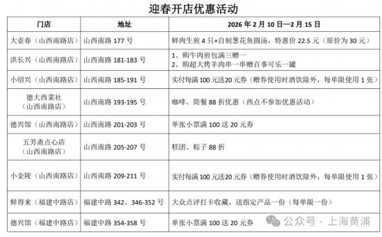 為保障老字號持續經營、守護品牌生命力,此次過渡經營場地由杏花樓集團統籌推進。目前,場地整體加固已完成並通過驗收,旗下各老字號店鋪內裝工作正穩步推進,預計1月底全部完成。屆時,鮮得來、德興館將入駐福建中路,大壺春、洪長興、小紹興、德大、五芳齋、小金陵等品牌則集中落戶山西南路(南京東路-天津路)。2月10日—2月15日,相關店家將推出開業迎春促銷活動。