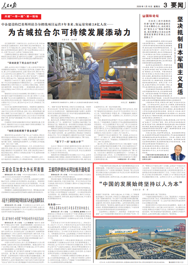 “中國的發展始終堅持以人為本”