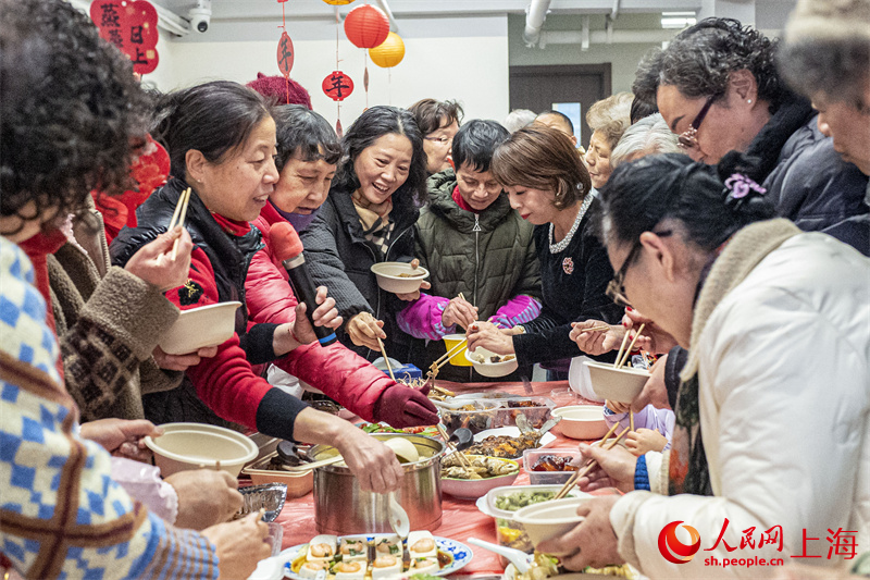 “讓一讓,‘招財進寶’來嘍。”69歲的萬月圓老人端著熱氣騰騰的拿手菜,笑盈盈地走進了小區居委會大會議室。長桌上早已擺滿了四喜烤麩、油爆蝦、全家福等各家各戶帶來的特色菜肴,香氣交織,暖意融融。
