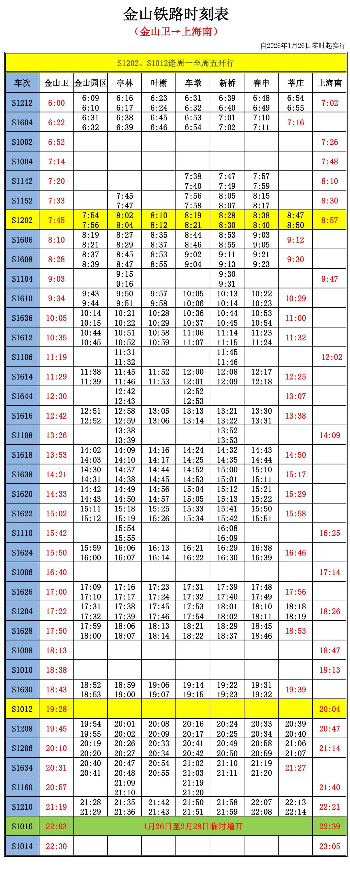 收藏原標題:【交通】金山鐵路2026年春節期間列車開行方案→