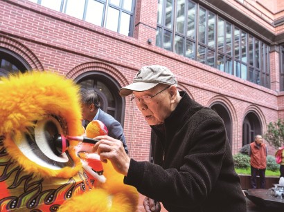 老人為醒獅點睛。 俱鶴飛 攝