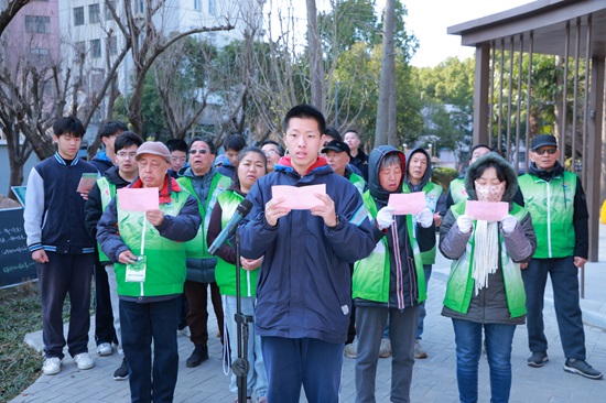 "能參與這次活動我非常高興,找到了幸福感。"學生代表的話語朴實真切。15人的護綠團隊由各族群眾與雲南班學生組成,他們發出攜手愛綠護園的倡議,也在一鍬土、一桶水中悄然融入社區生活。社區志願者代表同樣鄭重表態:"碩園是我們大家的小花園,我們會天天留心、常常照看,讓碩園一直清清爽爽、鬧猛又暖心。"