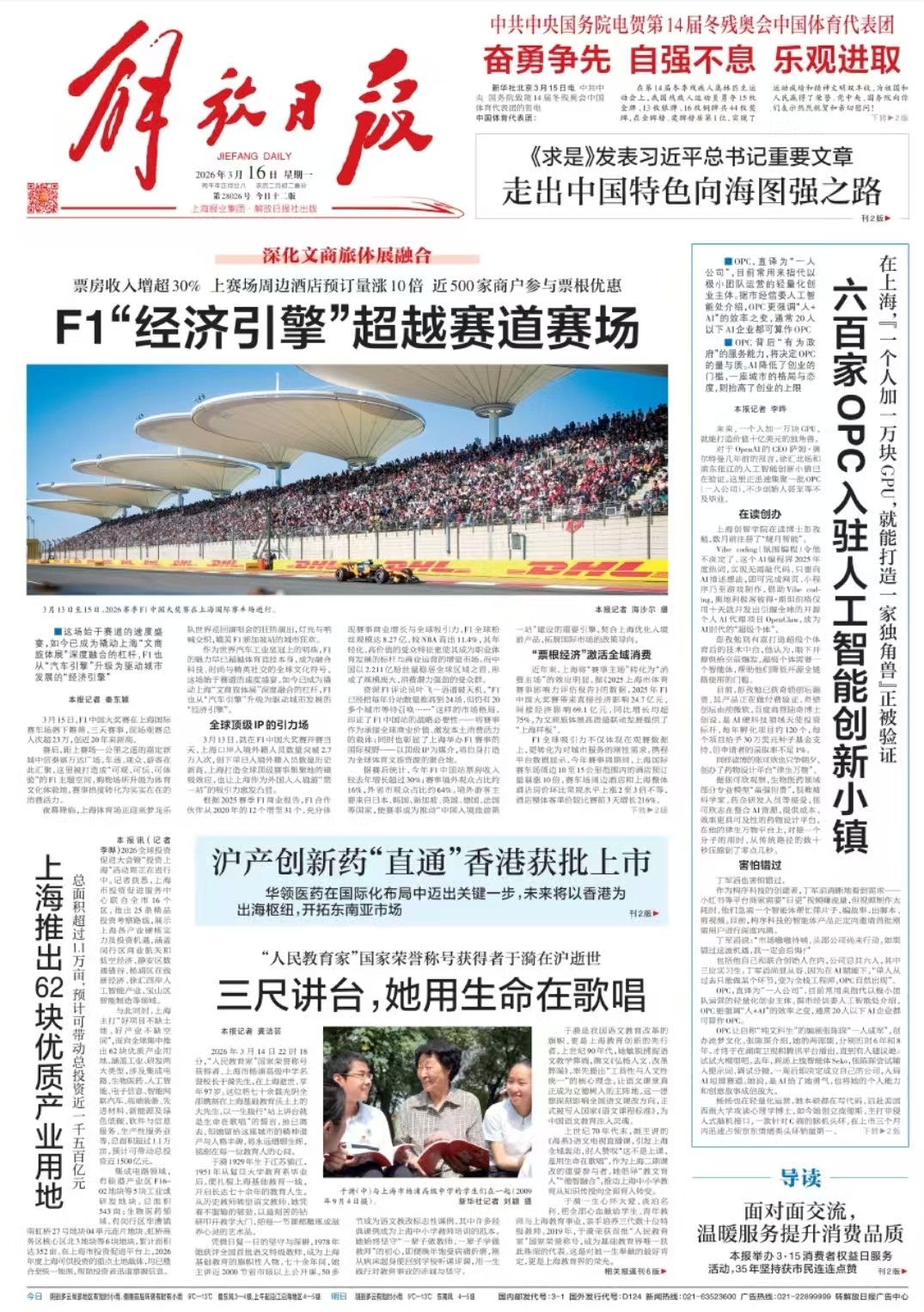 解放日報報道於漪老師事跡