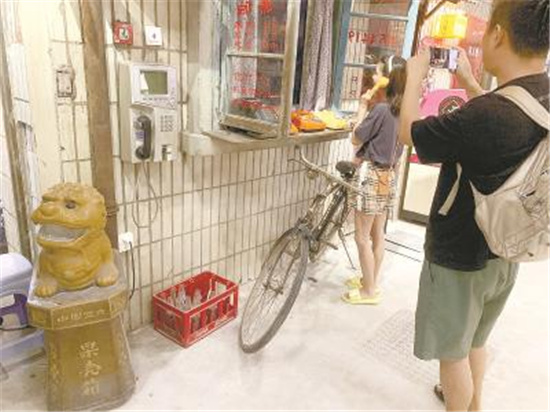 从概念雏形到最终呈现,整个街区的筹备时间只有半年多。但顾客现场看到的所有布置陈设中,至少有60%-70%都是原汁原味的老物件。除了部分难以还原的路灯、路牌、变压器是做旧仿制的,街区中大到房屋的门、窗,小到卧室玻璃柜里放着的摩托罗拉大哥大,大多为主创人员自己收集,或是在周边动拆迁时保留下来、经过消毒后展示的,连街角处的一个“狮子果壳箱”也是林涛专门从无锡的一名收藏者处购买所得。