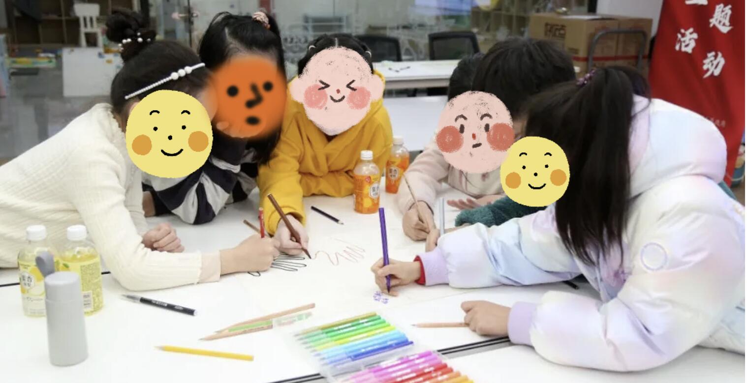 朋辈小组活动上,受助家庭的孩子们共同设计一件手工艺品——社区共享“福”箱。
