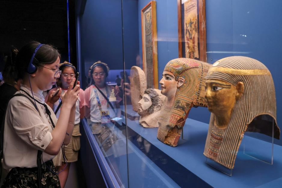 观众参观“金字塔之巅:古埃及文明大展”。王初摄