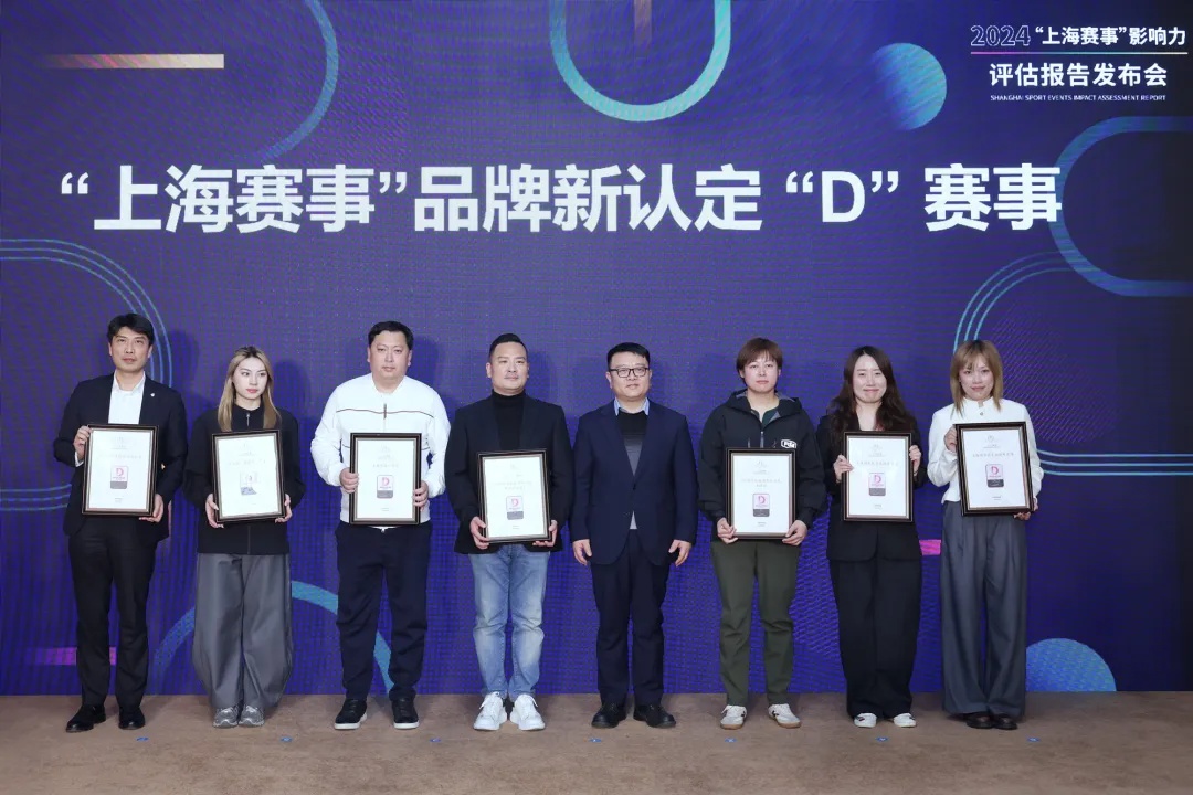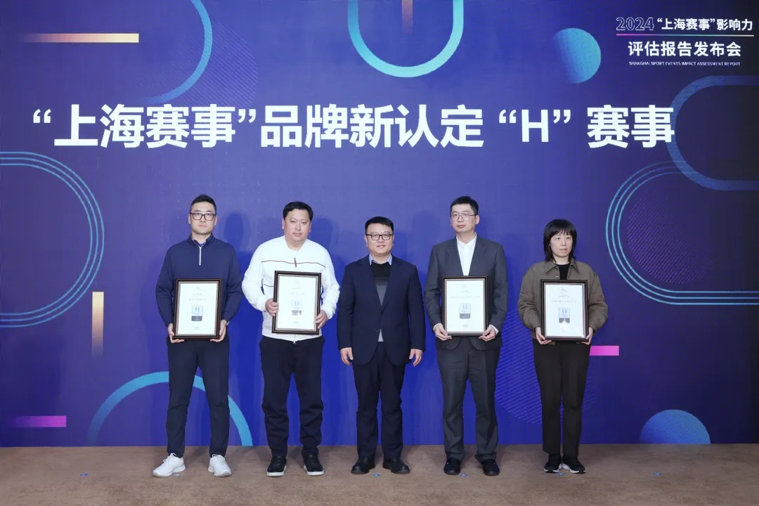 市体育局局长徐彬向新一轮“上海赛事”品牌认定中实现等级跃升的5项赛事和新增的7项赛事颁发“上海品牌赛事”证书
