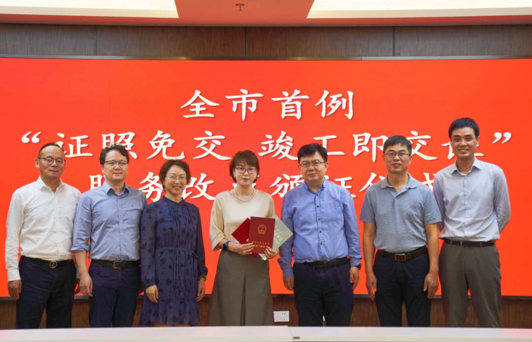 5月27日下午,全市首例“证照免交 竣工即交证”服务改革颁证仪式在区确权登记事务中心举行,作为全市首个依托竣工验收电子证照共享实现“免于提交”的“竣工即交证”项目,该案例不仅大幅提升了不动产登记便利度,也将企业竣工投产时间压缩至最短,成为金山区深化“放管服”改革的创新范本,也是上海以数字化驱动营商环境8.0版改革的生动实践。
