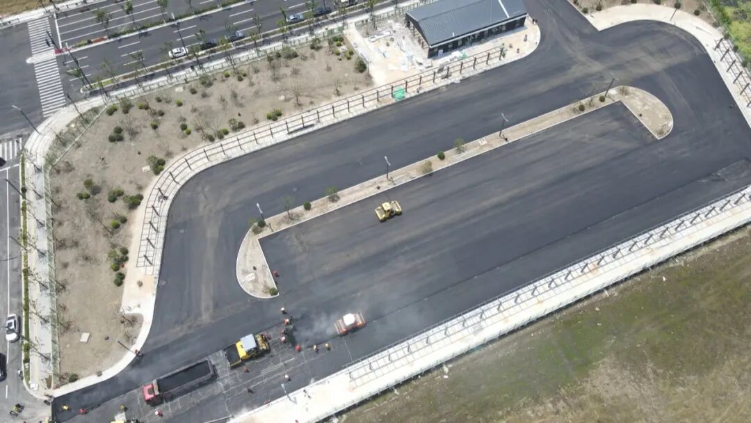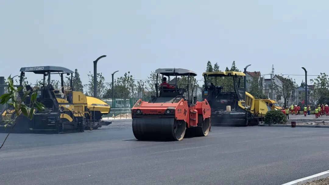 5月26日,在枫泾镇兴塔社区公交枢纽新建工程现场,工作人员正抓紧进行最后一轮沥青摊铺。据悉,两条公交专用道已成型,道路划线、绿化种植等配套工作也在同步推进。目前,主体结构已基本完成,管理用房进入收尾装修阶段,预计5月底正式竣工验收。