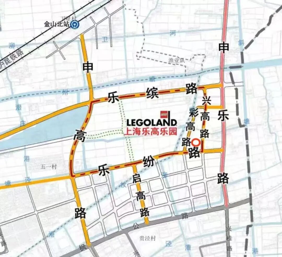 红○为位于乐纷路与兴高路交叉口的上海乐高乐园枢纽站