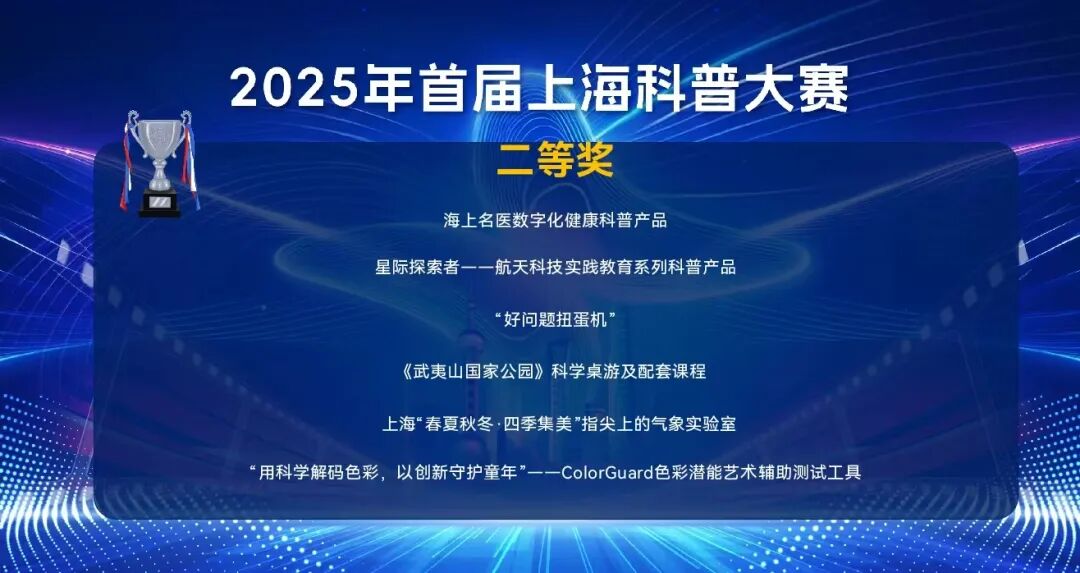 经过激烈的角逐和严格的评审,宝山区气象馆表现亮眼,其联合新民晚报、浦东新区气象局共同开发的《上海·四季集美 “指尖上的气象实验室”》项目,荣获此次大赛科普作品“二等奖”。