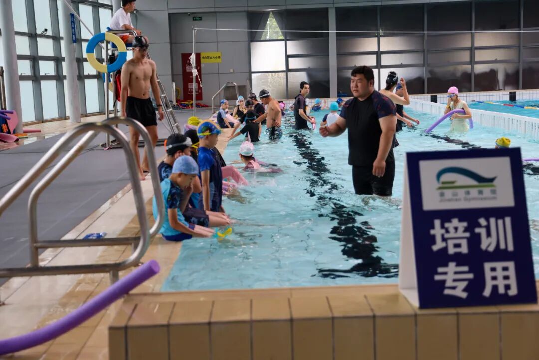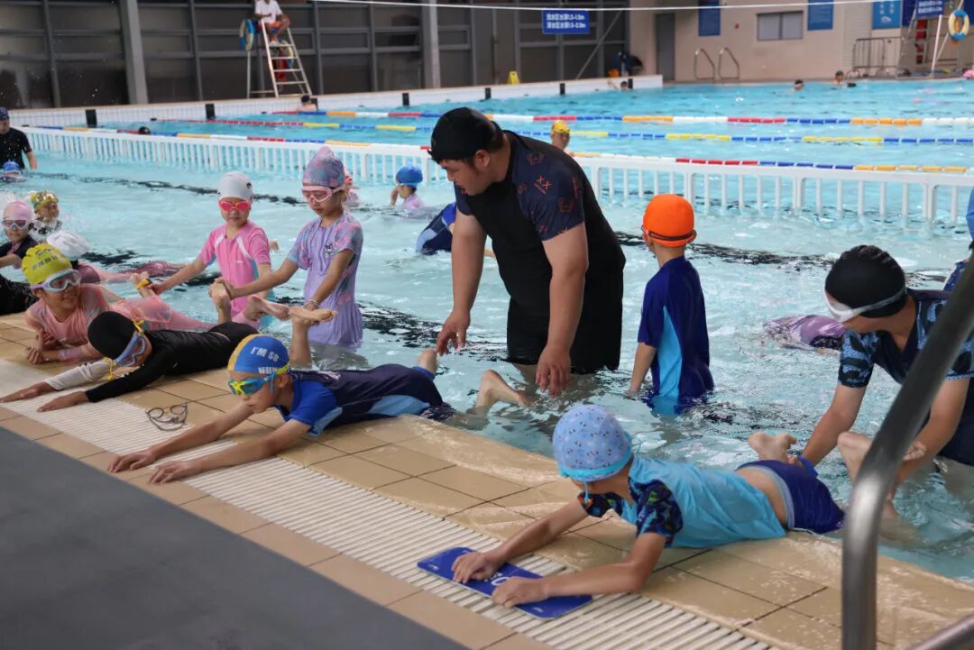 而在另一边的游泳馆内,孩子们在教练的指导下认真练习腿部动作,趴在池边蹬水。教练则在一旁仔细观察,不断纠正孩子们的姿势,并不时鼓励大家。