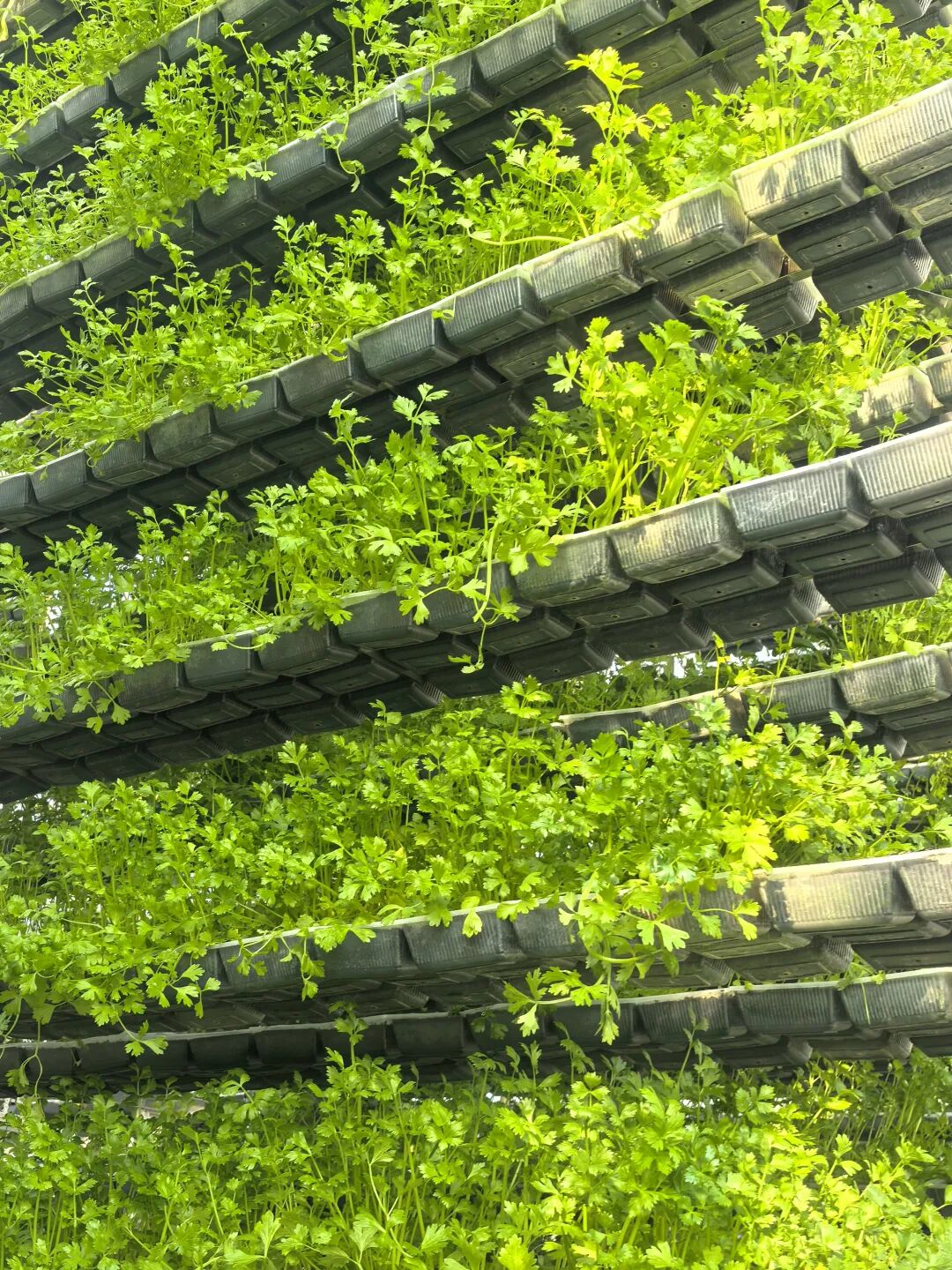 走进立体有机蔬菜生产基地,映入眼帘的是整齐排列的70组多层旋转装置,每组装置高达12层,共占地1400平方米,其中一个装置相当于72平方米的种植面积;每层包含2个种植区块,种植区块可以进行整体旋转,保证每个种植区块的蔬菜都能够有充足的光照。