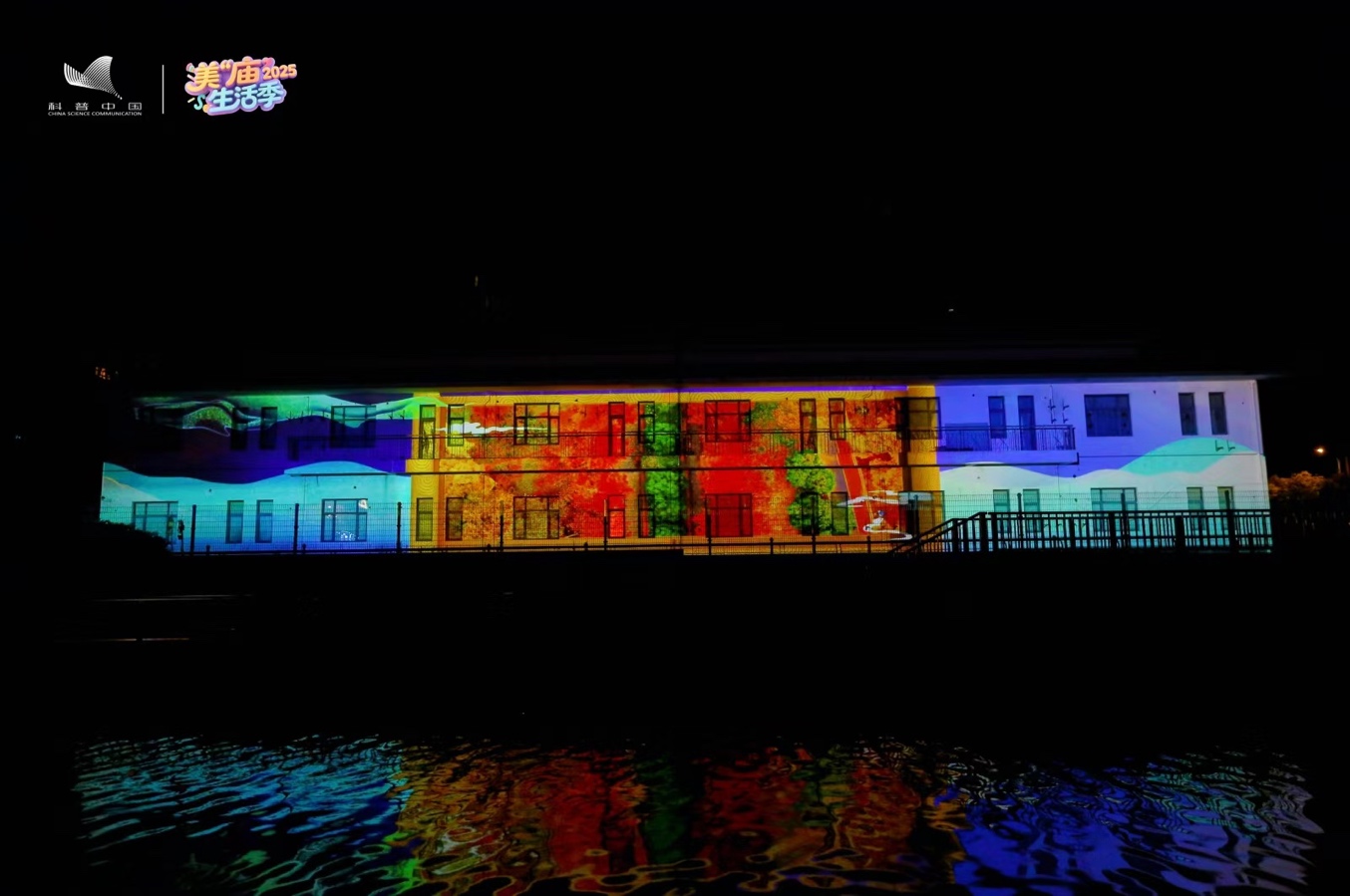 借上海市第二届国际光影节开幕之机,庙行镇推出了“东茭神韵智慧光影秀”。19日晚间,随着光影闪烁,东茭泾沿线瞬间被点亮。以光为笔、以楼为幕,数字化技术将河畔建筑打造成了一幅从历史到未来、从缅怀到奋进的光影长卷,为市民们带来了一场震撼的视觉盛宴。
