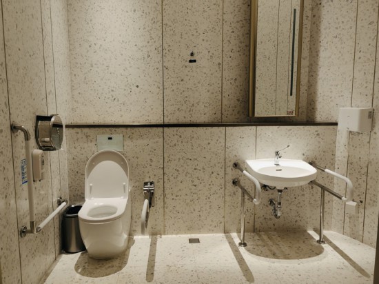 《指引》对无障碍通行提出了明确要求:商场出入口、台阶、平台与电梯落差处应配备坡道、踏板、升降平台等无障碍设施。主通道、转弯处及电梯门宽度应不小于90厘米,确保轮椅顺畅通行。卫生间应配备老人专用坐厕位及无障碍卫生间,商场主要通行区域地面应采用防滑材料等。