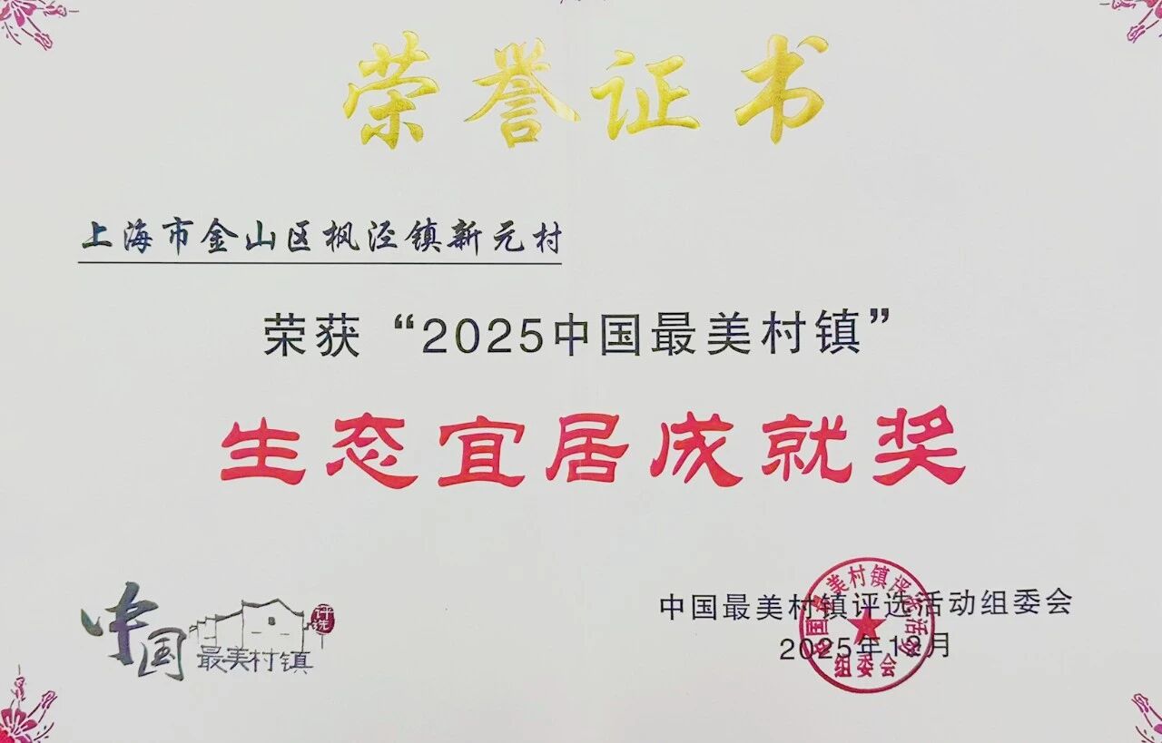12月6日,从“2025乡村振兴成果推介交流会暨最美村镇颁奖典礼”现场传来喜讯,枫泾镇新元村荣获“2025中国最美村镇”生态宜居成就奖。