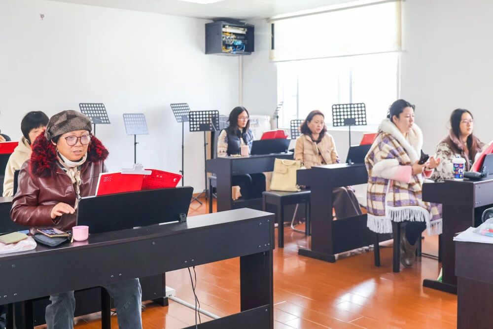 清脆亮丽的陶笛声缓缓流淌,音乐教室的学员们正认真地上课,从单人独奏到合奏,汇成一阵阵流畅悦耳的旋律。学员们目光聚焦乐谱,指尖在陶笛上起落,气息平稳地吹响乐器。“我一开始是乐器‘小白’,课上从乐理知识开始学,回去一句句练,坚持到现在能演奏《雪绒花》《送别》这些曲子了,过程是挺难的,但也增加了很多生活的乐趣。”钱阿姨分享自己对音乐的喜爱。