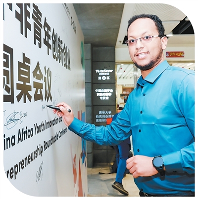 纳尔参加在北京举行的中非青年创新创业圆桌会议。 |