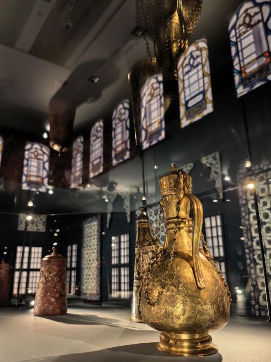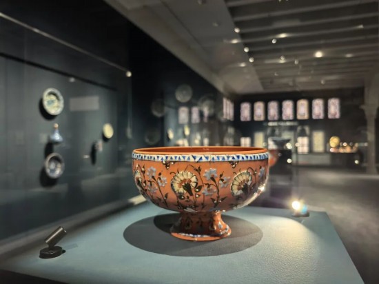 展览还将观众带入伊兹尼克陶瓷的绚烂世界,坦卡德杯、奇兽纹盘等陶瓷珍品折射出来自包括青瓷在内的中国瓷器的影响,更诠释了奥斯曼陶工对于图案的不断探索。众多不同材质的建筑装饰构件,映射出奥斯曼帝国将图案从器物延伸至建筑的美学成就。