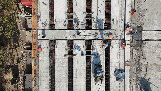 在顶升过程中,由于每个桥墩需要抬升的高度不同,为确保整体抬升的精度与安全,施工团队首先将桥梁各跨平面连接及原有桥梁墩柱进行切割并断开,解除所有平面及立面受力约束。据介绍,为实现老桥与新建桥梁的无缝对接,通过布置在关键部位的上百个高精度传感器,实时采集位移、压力数据,并由中央控制器进行每秒上千次的运算,实现实时监测与纠偏,确保数百个液压千斤顶动作绝对同步,将整体抬升误差严格控制在±1毫米以内,最终以接近零误差完成抬升工作。