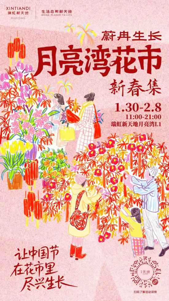 新春佳节即将到来,瑞虹新天地和蔚冉生长花鸟市,将推出“特别限定版”蔚冉生长月亮湾花市新春集。