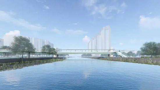 据普陀区重大办介绍,工程主要建设内容包括新建桥梁工程及其引起的改造工程。桥梁主桥长度为85.5米,北岸将设置一座人行梯道和一座非机动车推行环形坡道,南岸设置一座人行梯道;主桥两侧计划各设置一部无障碍电梯,满足无障碍通行需要;同步实施新建桥梁工程引起的道路、防汛墙等改造工程,以及交通标志标线、排水、照明等附属工程。桥梁计划于2026年底具备通行条件。