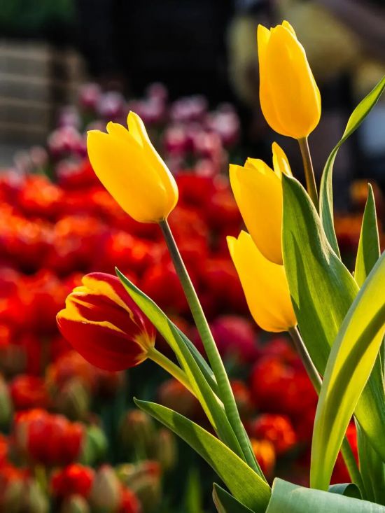 复兴公园大草坪上,有一片超过600㎡的郁金香主题”光明花园”,颜色各异。超级出片!