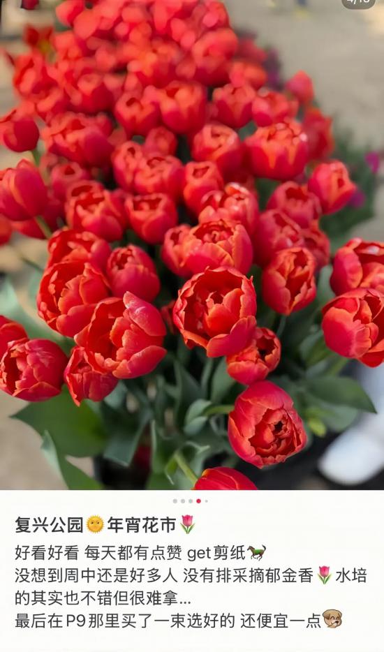 社交媒体上,不少网友分享了两个花市场地的不同体验感!复兴公园花市以平价花市为主,有烟火气与童趣,适合全家老少一起逛,热闹有年味~