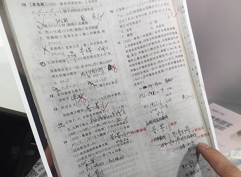 一起亮相的商量智能批阅系列产品同样吸睛,涵盖教师端智能批阅智能体软件、智能批阅打印机以及家长学生端错题宝小程序。“它能精准模拟老师真实批阅思路,潦草字迹也能看懂,全科题目都能解,主观题步骤判得细,还能精准分析学生学习情况。”工作人员现场演示一份高中数学试卷,错题位置、错误原因清晰标注,一目了然。